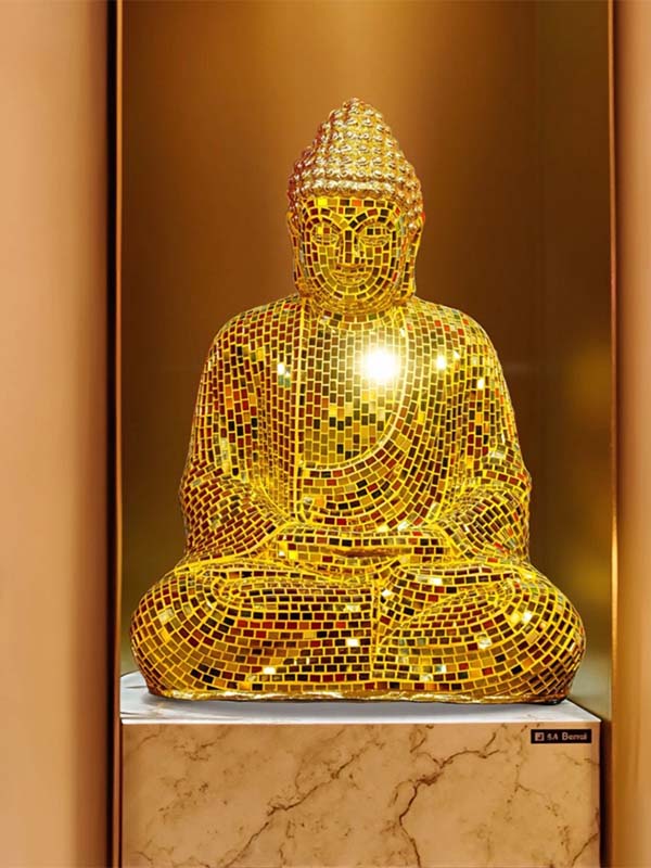 As a professional custom Mosaic Sculpture Manufacturer, we provide flexible customization for size, color tone, and surface detailing to match hotel lobbies, spa centers, meditation halls, and luxury interior projects. The reflective mirror surface enhances lighting effects, creating a calm yet iconic visual focus.